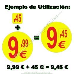 Rollo de 500 etiquetas adhesivas "9,99 €" Amarillo.