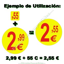 Rollo de 1000 etiquetas adhesivas "55 Céntimos" Amarillo.