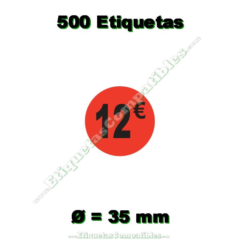 Rollo de 500 etiquetas adhesivas "12 €" Rojo Flúor.