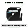 Cinta de Etiquetas Compatibles con Brother M-K121 (No son originales) de 9 mm x 8 metros con impresión en Negro sobre fondo Transparente.