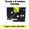 Cinta de Etiquetas Compatibles con Brother TZe-FX631 Flexible de 12 mm Negro / Amarillo.
