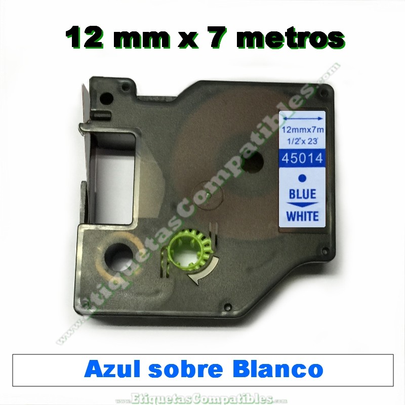 Cinta de Etiquetas Compatibles con Dymo 45014 / S0720540 (No son originales) de 12 mm x 7 metros con impresión en Azul sobre fondo Blanco.